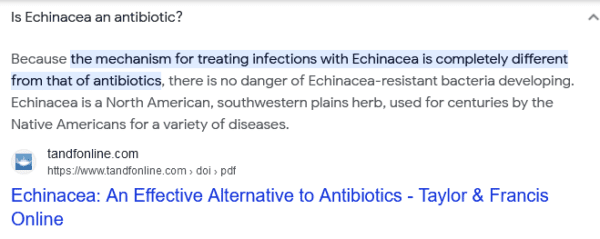 One good thing is that, unlike antibiotics, No Bacterial can resist echinacea, which means it can continue to work for you no matter how much resistant the bacterials in the body are