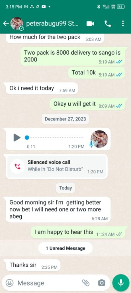 I want you to be sure of the genuity of this product, so I will be offering you a payment on Delivery option. This means that…You will only be paying for the Pack once the Product gets to your doorstep.