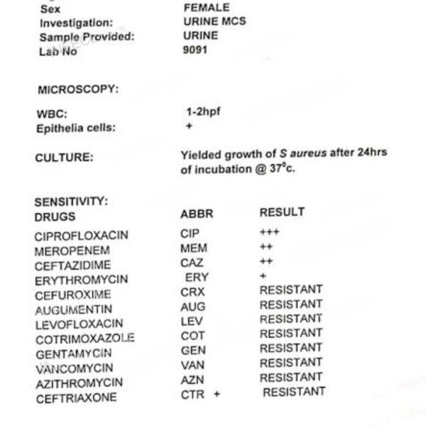 The Image below is someone’s test result ( the name is cut off for privacy) the test result shows a list of antibiotics he’s body is already resistant to. Meaning these antibiotics with resistance in front of them can no longer work for him. It can be anyone, even you!